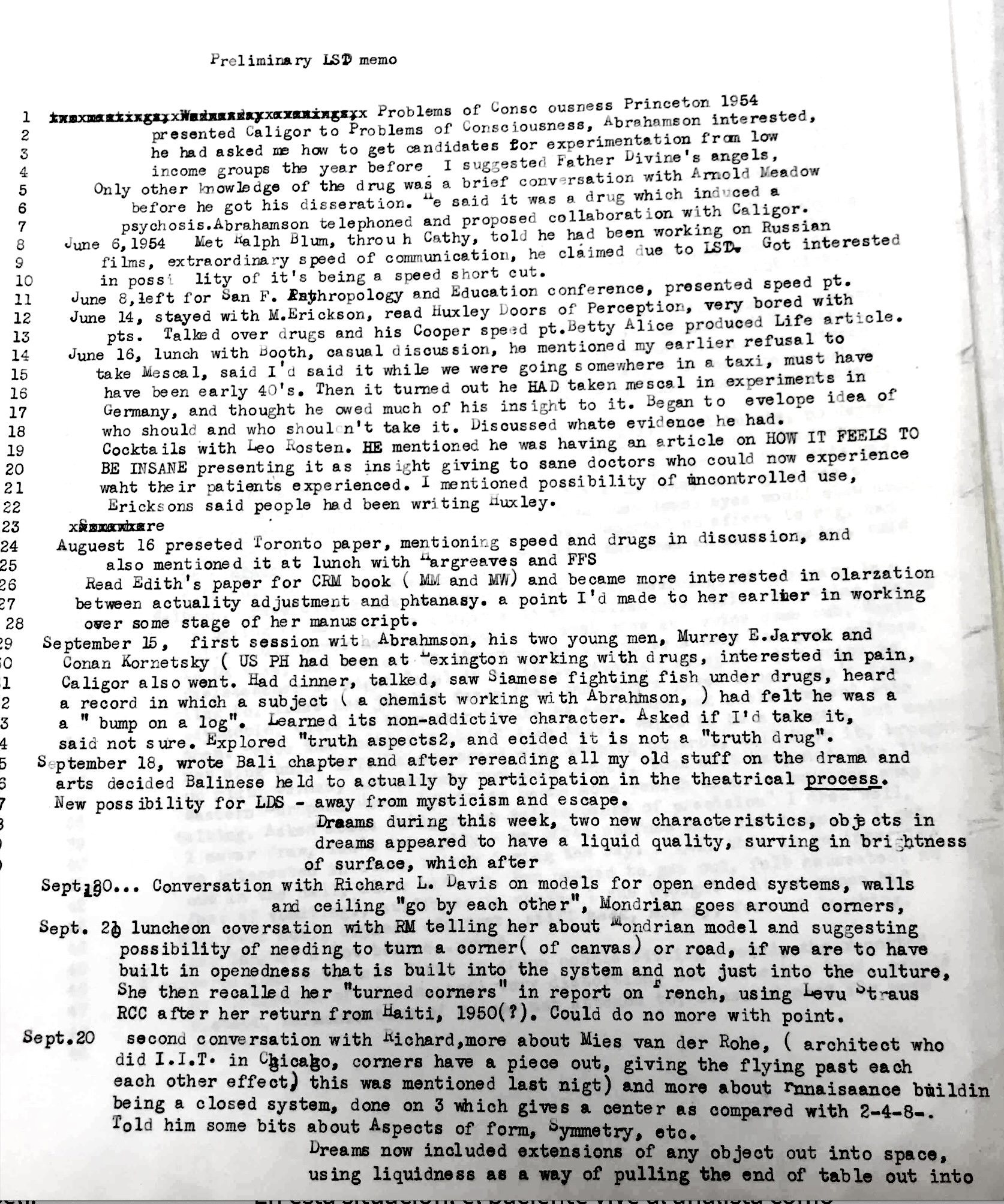The document presented here—a confidential memorandum by the brilliant cultural anthropologist Margaret Mead, dated to September 1954—challenges the conventional chronology of the psychedelic era. Written nine years before Timothy Leary’s firing from Harvard and more than a decade before the Summer of Love, this memo captures anthropologist Margaret Mead in the midst of a private, rigorously intellectual negotiation with the concept of expanded consciousness. It documents her preparation for an experimental LSD session with Dr. Harold Abramson, a CIA-funded allergist who became a central node in the U.S. government’s covert MKULTRA program.